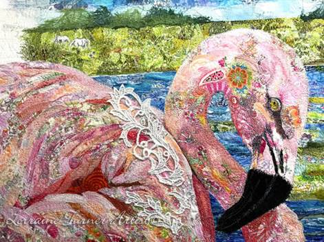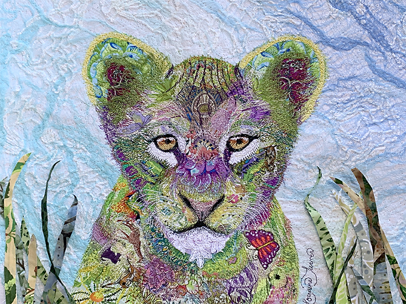 Sandra is an award-winning art quilter from the USA. She uses a unique style of textile collage in stunning designs, and incorporates thread painting, pencil and paints to achieve her goal.
